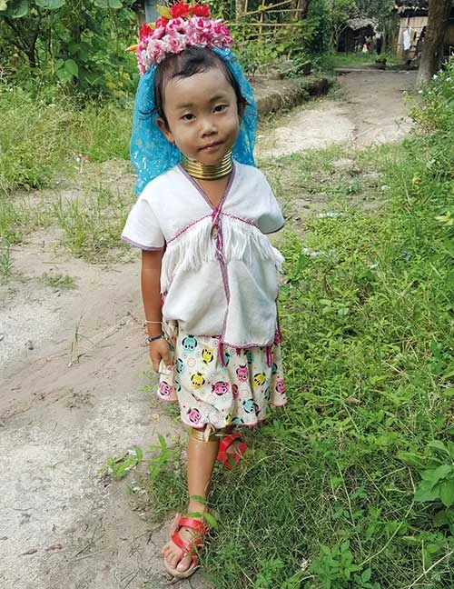 Ở làng Karen, tôi quen một cô gái nhỏ, dĩ nhiên cũng đang mang vòng cổ như bao cô gái khác. Vẻ đẹp trong trẻo và hiền hòa của cô bé làm tôi cảm động. Tôi ghé nhà em chơi thật lâu. Với vốn tiếng Anh bập bõm, em kể em 15 tuổi và đã năm năm mang vòng cổ. “Em không bao giờ mở vòng cổ ra kể cả khi tắm. Lúc ngủ thì em nằm nghiêng như thế này. Em sẽ mang vòng suốt đời, không bao giờ tháo ra”, em giải thích bằng cử chỉ.