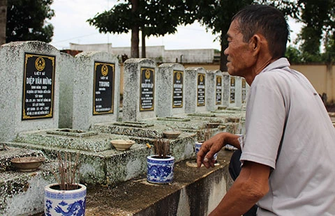 Ông Diệp Văn Luôn (67 tuổi, thị trấn Bến Cầu, Tây Ninh) đến Nghĩa trang liệt sĩ huyện Bến Cầu viếng mộ cha và chuẩn bị cho ngày giỗ 27-7. Cha ông là liệt sĩ Diệp Văn Mừng, hy sinh năm 1948, lúc đó ông Luôn còn nằm trong bụng mẹ.