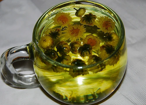 Hoa cúc Đức: Bạn có thể thường hay dùng loại trà hoa cúc này để dễ ngủ. Nhưng loại hoa cúc trắng vàng này cũng có khả năng kháng sưng viêm có thể giúp làm giảm đỏ mặt, dịu làn da bị kích ứng do viêm.