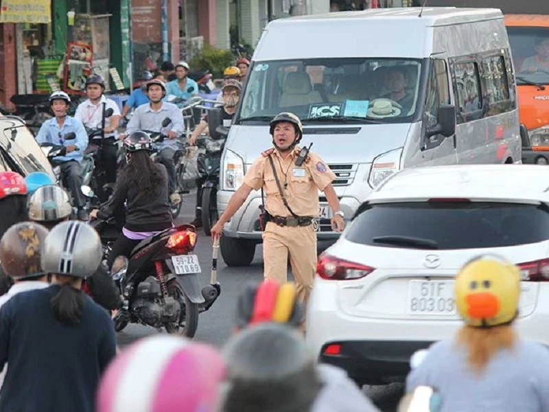 Lực lượng CSGT mỗi ngày vẫn căng mình chống kẹt xe. Ảnh: Lê Thoa