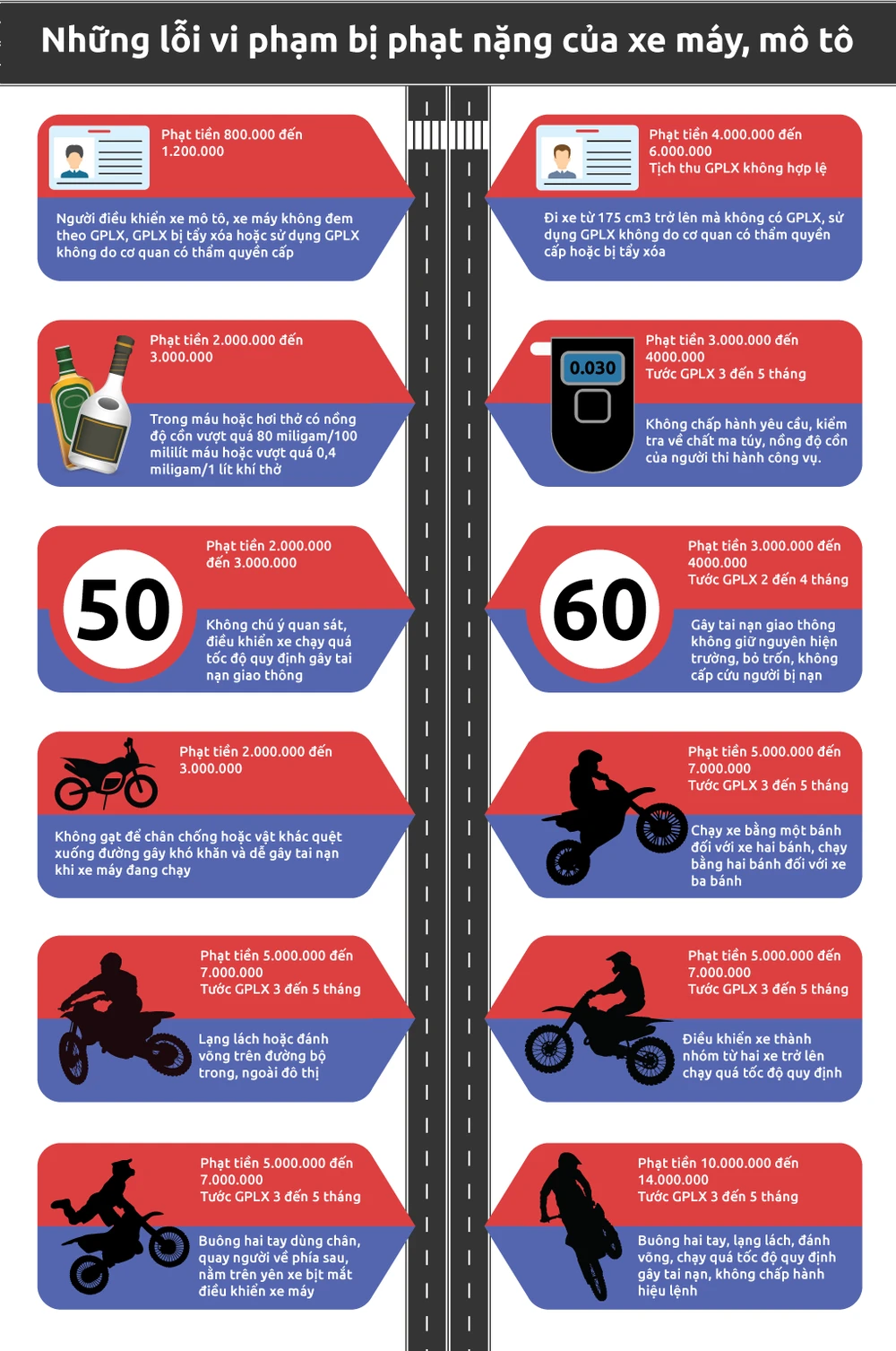 Những lỗi vi phạm bị phạt nặng của xe máy, mô tô