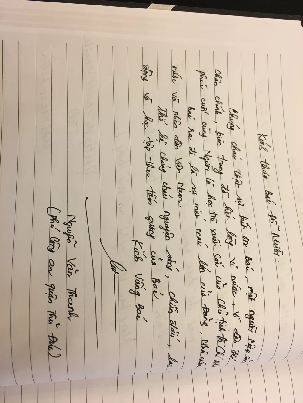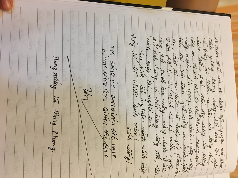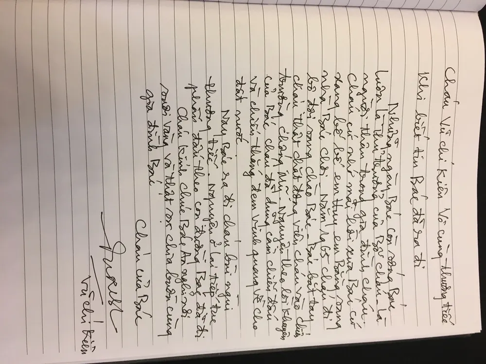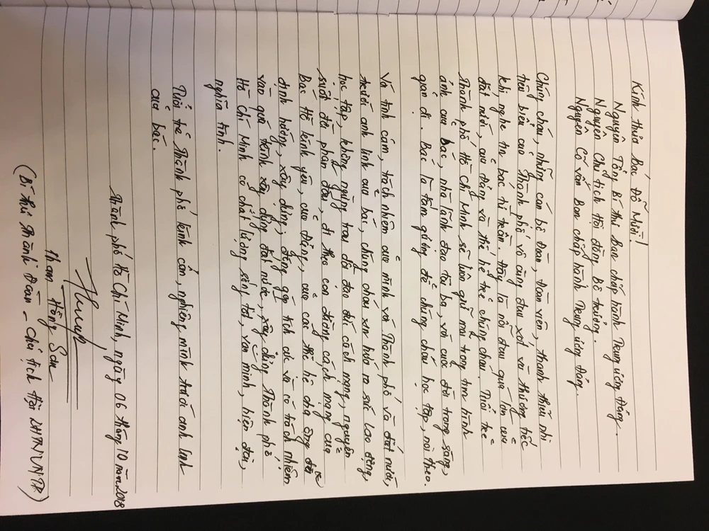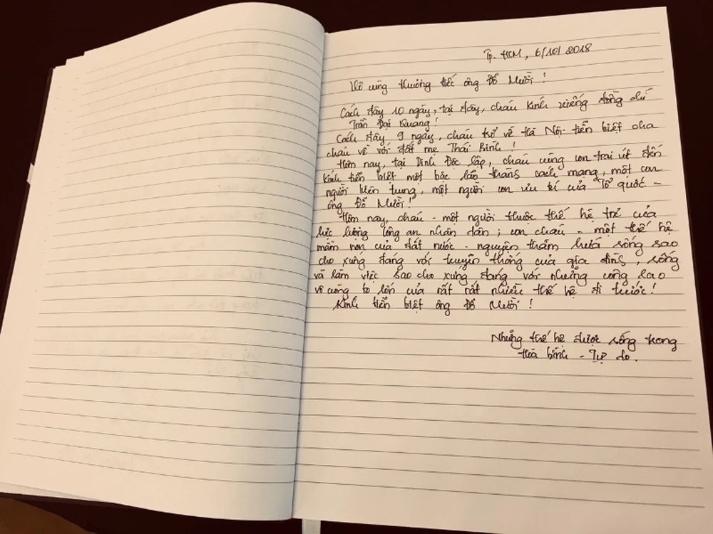Nét chữ của cụ bà đã 80 tuổi tự bắt xe buýt tới, mong tận tay tham gia lễ viếng, viết vào sổ tang, tiễn đưa cố Tổng Bí thư Đỗ Mười.