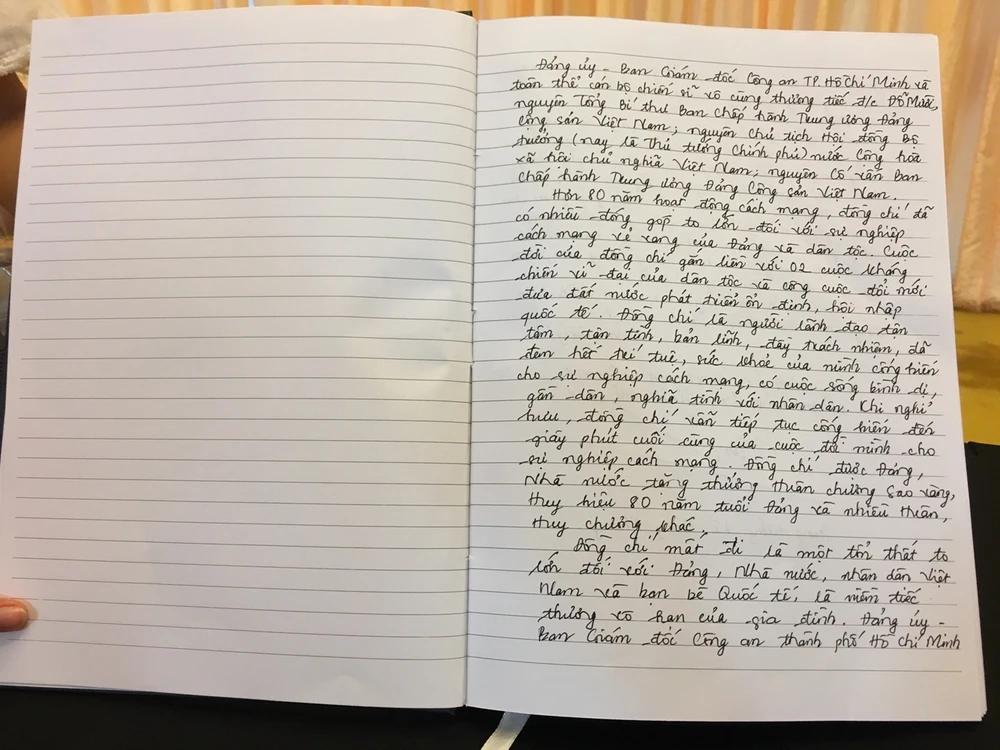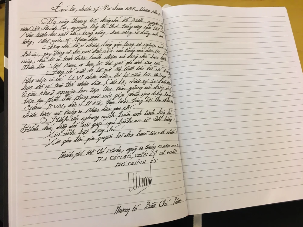 Trung tướng Lê Đông Phong, Giám đốc Công an TP.HCM viết trong sổ tang.