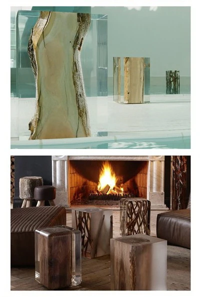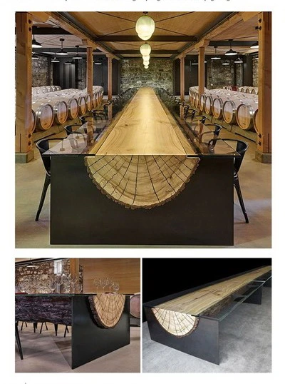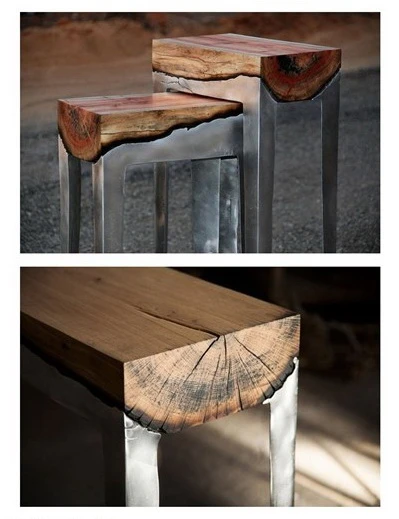 Chiếc bàn kết hợp khúc cây và nhôm