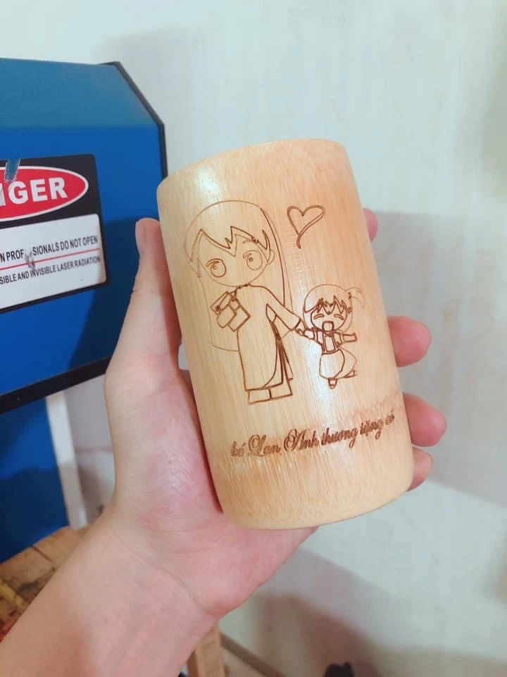 Chiếc ly khắc hình cô giáo dắt tay em đầy ý nghĩa.