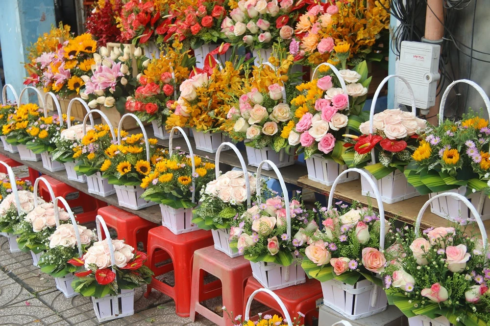 Những bó hoa thay cho lời yêu thương của người trẻ dành tặng mẹ. Ảnh: THẢO PHƯƠNG
