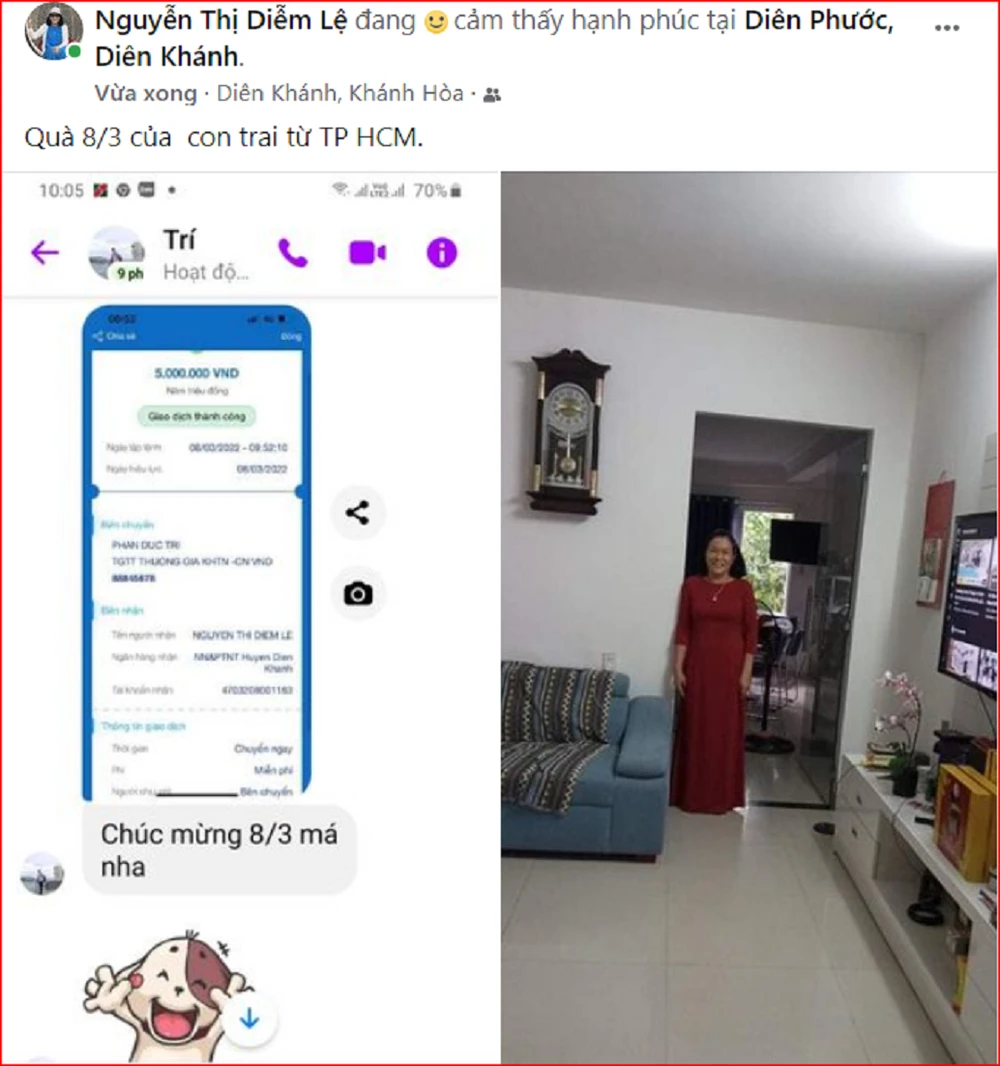 Một bà mẹ khoe quà 8-3 của con trai từ nơi xa. Ảnh: NVCC