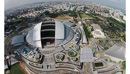 2- Sân vận động quốc gia Singapore vừa xây mới hoàn thành cách đây một năm với giá một tỷ USD, nơi diễn ra lễ khai mạc và bế mạc SEA Games 28. Ở đó cũng là nơi tranh tài của 10 trong 36 môn thể thao tại SEA Games này.