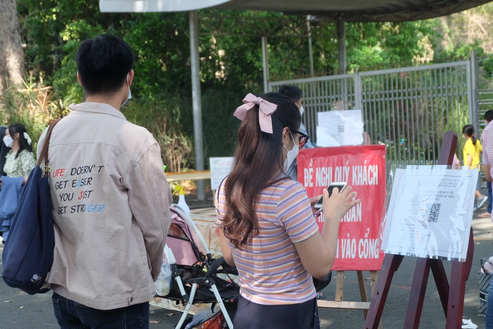 Khách đến các điểm vui chơi phải khai báo y tế, rửa tay sát khuẩn và đeo khẩu trang.