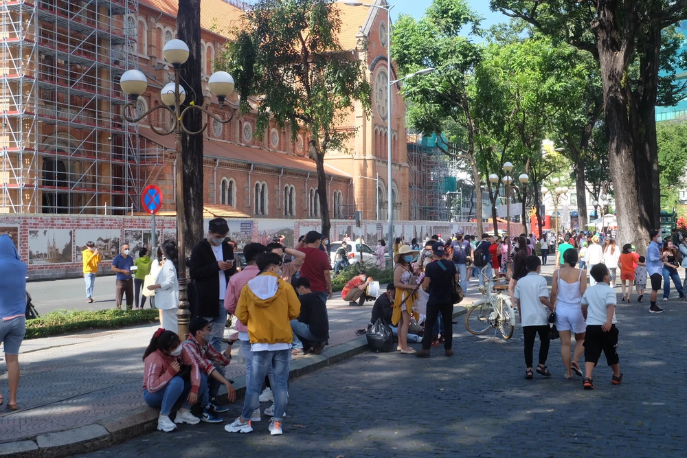 Buổi sáng đầu tiên của năm 2022, thời tiết TP.HCM mát mẻ, dễ chịu. Rất đông người dân đổ về trung tâm quận 1 để vui chơi, chụp ảnh kỷ niệm.