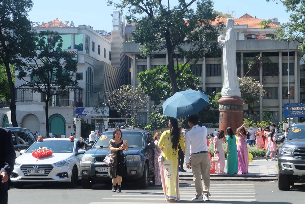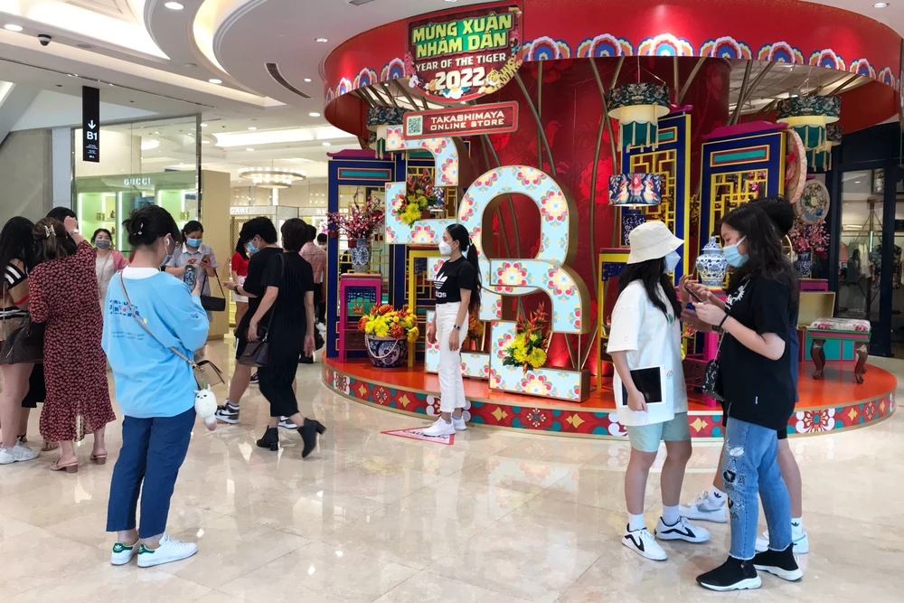 Tại các khu Trung tâm thương mại như Vincom Center Đồng Khởi (quận 1,TP.HCM) cũng thu hút đông đảo người dân đến chụp ảnh và mua sắm.
