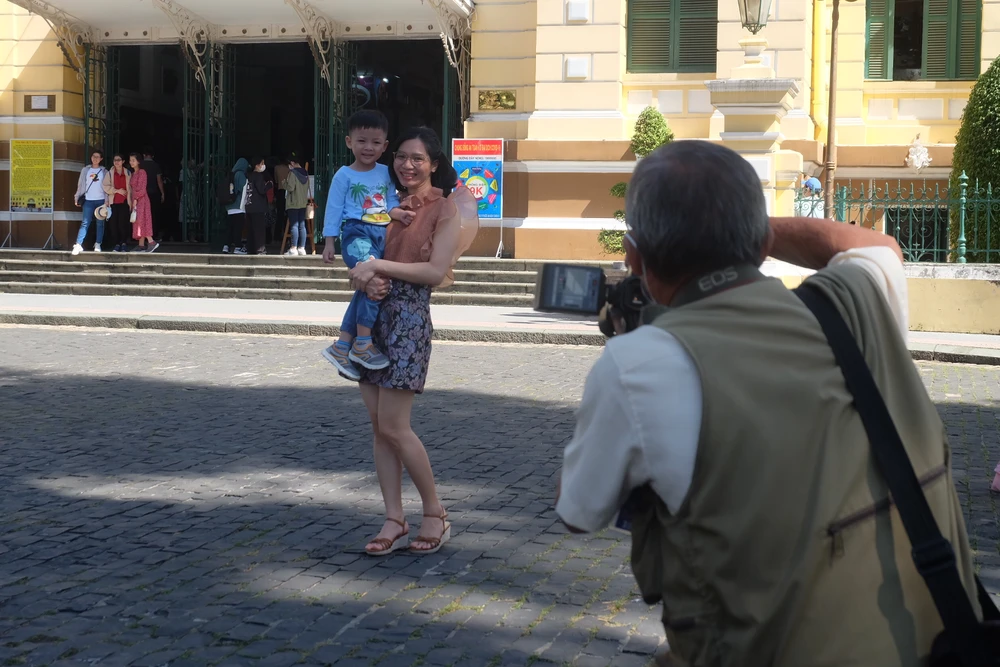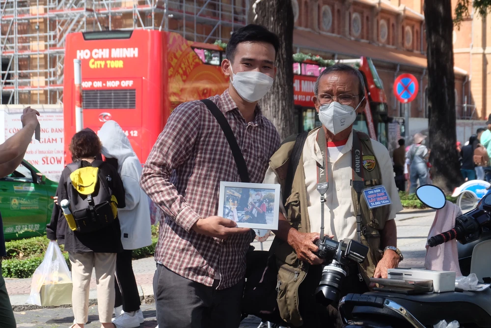 Tại khu vực Bưu điện Thành phố, ông Nguyễn Văn Diên (79 tuổi) làm thợ chụp ảnh hơn 30 năm phấn khởi cho biết: "Sáng nay mọi người kêu tôi chụp ảnh khá nhiều, chụp được hơn 100 tấm rồi. Mừng lắm".