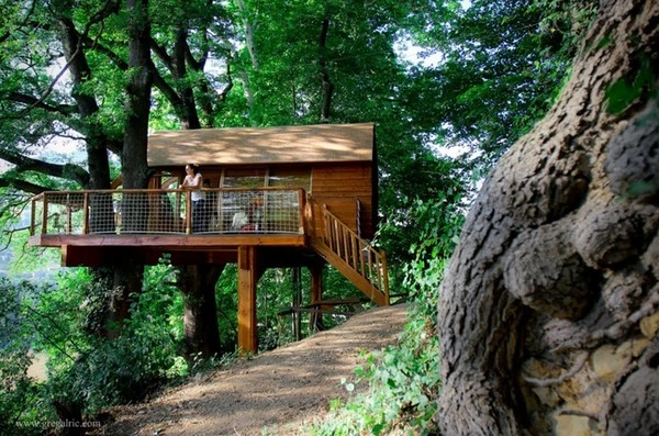 10. Căn nhà nhỏ cửa xanh được dựng lại từ một chiếc xe kéo tại Stanwood, Washington, Mỹ.