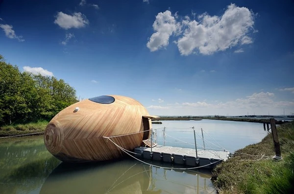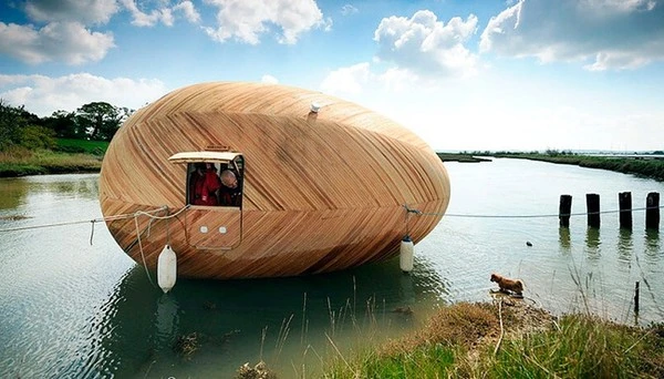 5. Căn nhà có hình dáng giống như trái trứng trôi nổi trên mặt nước tại sông Beaulieu, Hampshire, Anh.
