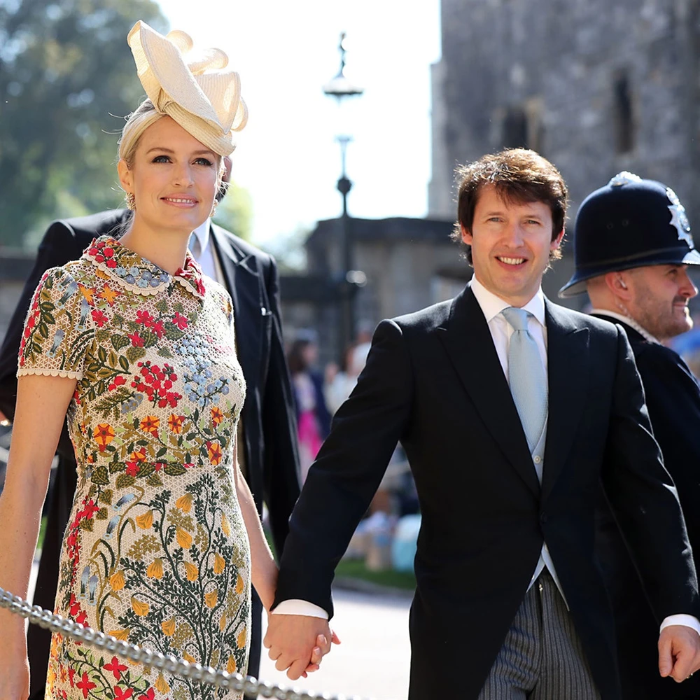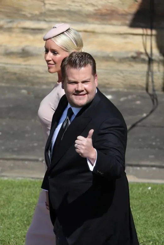 Nhà sản xuất truyền hình Julia Carey và ông xã James Corden tay trong tay đến lễ cưới. James Corden là người dẫn chương trình hàng đầu của Anh. Ảnh: Reuters