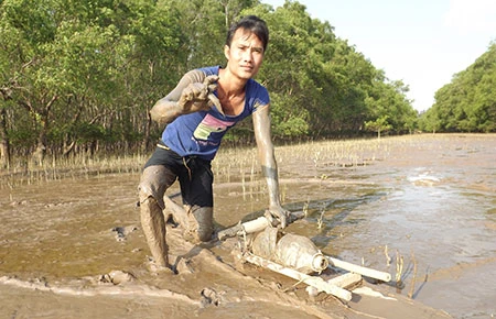 Gần 12 giờ trưa, khi thủy triều lên, tôi tháp tùng với đám “thợ mong” vội vã trở về đất liền, một bên đầu gối vẫn còn ê ẩm vì quỳ trên “mong”, chân còn lại mỏi nhừ vì phải đạp bì bõm dưới lớp sình dày đặc. “Mong” một thời được xem là “nồi cơm” của dân biển, bây giờ khi con cá kèo, cá bống sao thậm chí là những con cua “nhướng” (cua con, phải nhướng mắt mới nhìn thấy - PV) lần lượt bị tận diệt, nhiều “thợ mong” đã bỏ biển, bỏ “mong”.