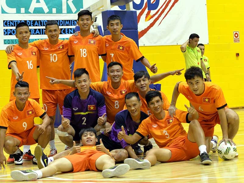 Đội tuyển Futsal Việt Nam với thành tích vượt trội trong năm 2016 cùng phần thưởng Fair Play do FIFA trao tặng. Ảnh: QUANG THẮNG
