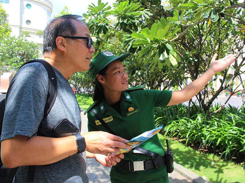 Vì vậy, chúng tôi luôn cố gắng có mặt để ngăn chặn trước khi chuyện xấu xảy ra. Chẳng hạn khi thấy khách nước ngoài lại mua hàng, sắp trả tiền cho tài xế thì chúng tôi đều xuất hiện để khách khỏi bị gạt. Hoặc trong quá trình trực ở chốt, chúng tôi thường nói chuyện với những người bán hàng rong, xe ôm qua cuộc sống hằng ngày để họ hiểu mà chọn cách mưu sinh chân chính, góp phần để TP đẹp hơn trong mắt du khách.