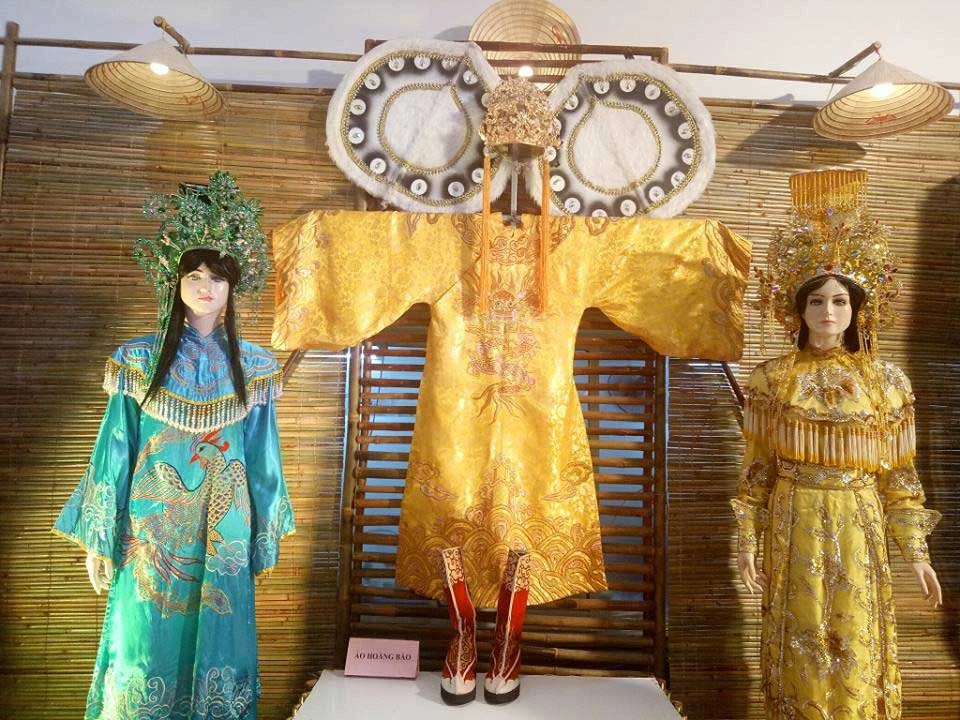 Phụng bào (bên phải) từng được NSND Phùng Há mặc cách đây hơn 60 năm đang được NS Bảo Ly lưu giữ tại tư gia. Ảnh: TRÚC PHƯƠNG