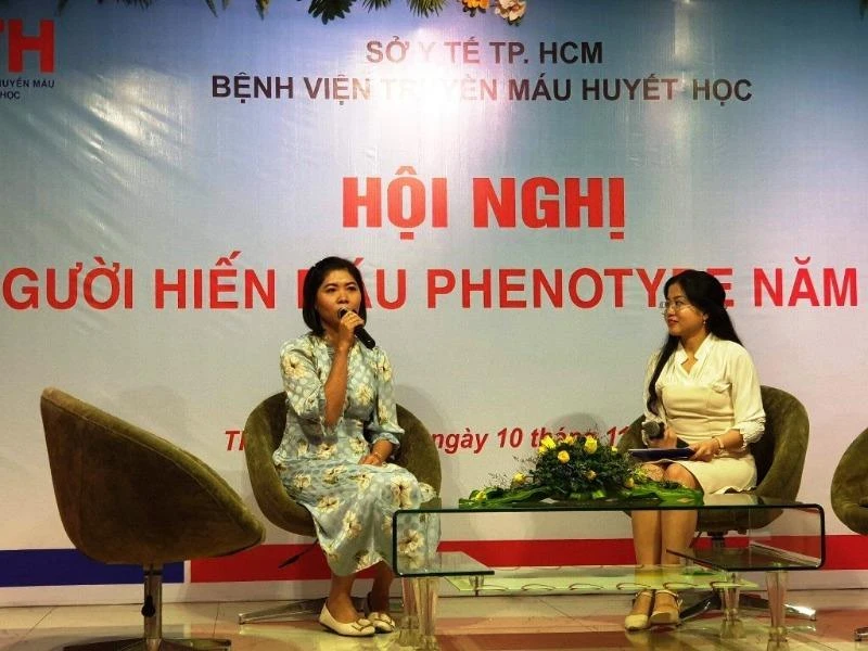 Chị Bình chia sẻ về việc tham gia câu lạc bộ hiến máu phenotype tại BV Truyền máu Huyết học TP.HCM. Ảnh: HL