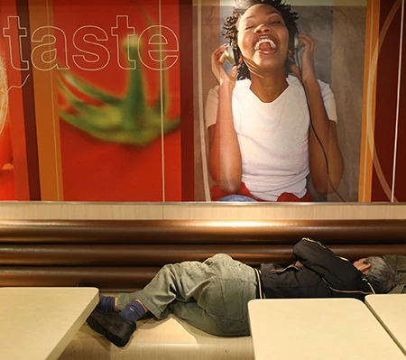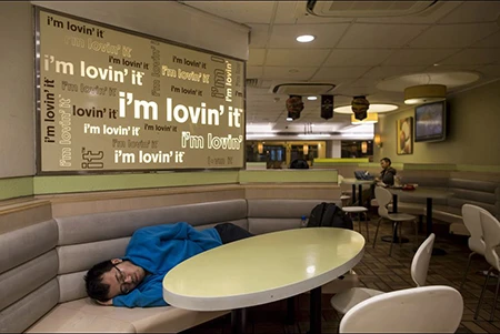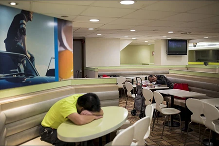 Tháng trước, một người vô gia cư tại Hong Kong đã chết trong một quán thức ăn nhanh như thế.