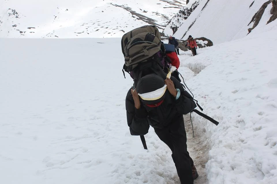 Mấy chục kí lô hành lý của khách trên vai, họ còng lưng mang vác để chúng tôi chinh phục những ngọn núi cao. Ăn uống thì sau khách, giày và áo quần giữ ấm thì ít và dỏm hơn khách, luôn hiền lành và nhẫn nhịn- là họ.