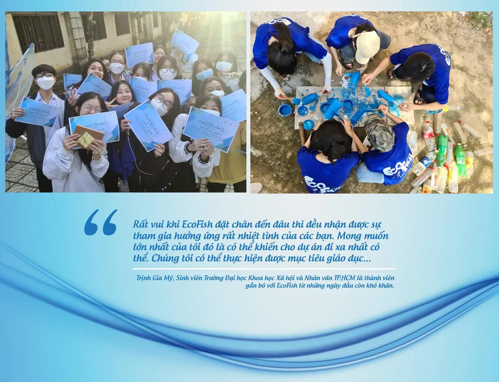 Đến thời điểm hiện tại, EcoFish đã đưa được mô hình cảnh báo về tác hại của rác thải nhựa đến với nhiều học sinh, sinh viên tại các tỉnh, thành phố như Quảng Ngãi, Nam Định, Hà Nội, Trà Vinh, Cần Thơ, TP.HCM và Bà Rịa – Vũng Tàu. Khi đặt mô hình tái chế tại trường học, các thành viên EcoFish dành nhiều thời gian tương tác với học sinh để giải thích những rủi ro, tác hại mà môi trường đang gánh chịu do thói quen sử dụng đồ nhựa thiếu kiểm soát. Hơn 5.000 học sinh đã được tiếp cận với mô hình của EcoFish.