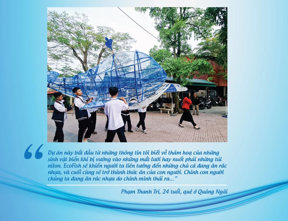 Trên hành trình lắng nghe âm thanh của đại dương, Trí lên ý tưởng cho Dự án EcoFish và nuôi dưỡng ước mơ về việc xây dựng các mô hình sinh vật biển khổng lồ chứa rác thải nhựa.