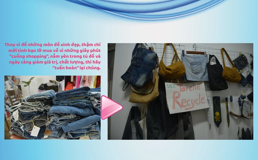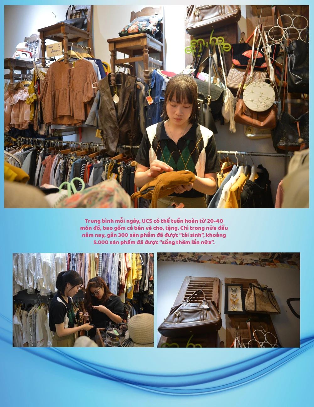 Còn với những món đồ hết giá trị sử dụng, không thể tặng, UCS sẽ gửi đến các đơn vị cần vải vóc cho những mục đích khác, như các hội nuôi thú cưng; hoặc tái chế, như vải jean “biến” thành những túi xách nhỏ xinh, móc khóa mini,… UCS sẽ luôn tìm cách “tuần hoàn” nhanh nhất có thể, chuyển những món đồ cũ đến tay người dùng mới chứ không để lại quá lâu tại cửa hàng.