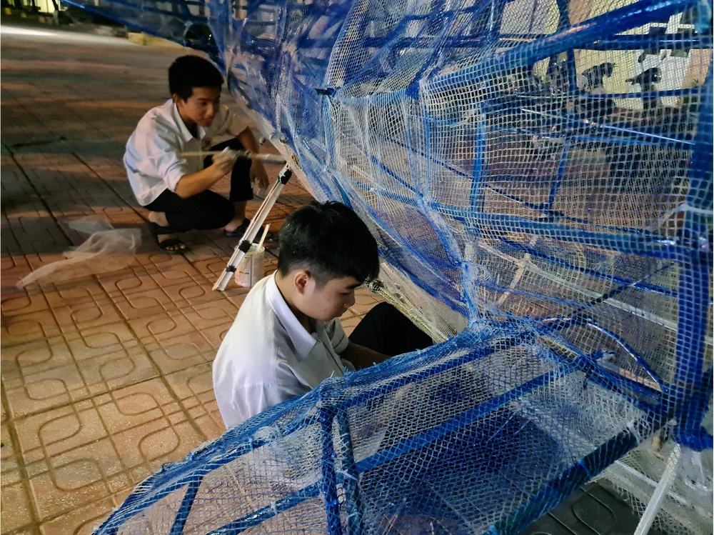 Chỉ sau 20 ngày chọn lọc, xử lý vật liệu và thực hiện các công đoạn, chú cá bống đầu tiên được ra đời và đặt tại Trường THPT Tư Nghĩa (Quảng Ngãi) - ngôi trường mà Trí từng theo học.