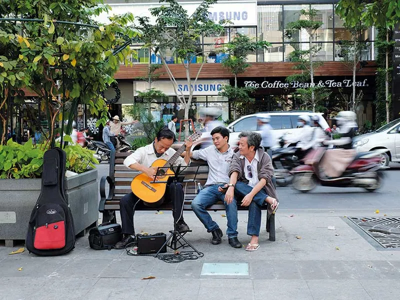 Chơi guitar trên phố đi bộ Nguyễn Huệ, TP.HCM. Ảnh: BST