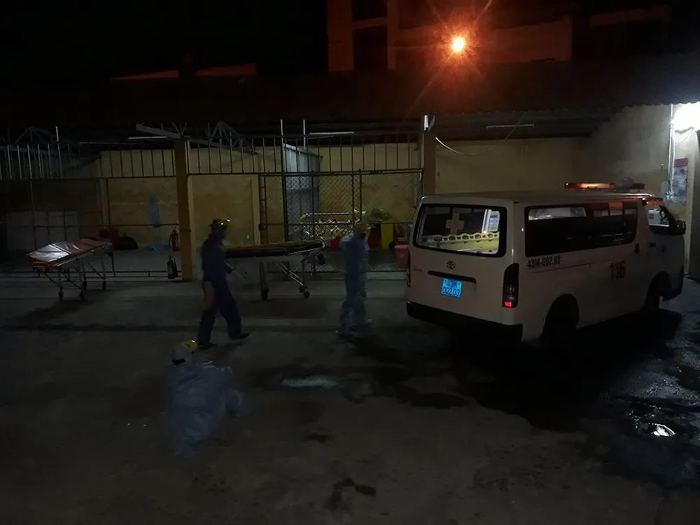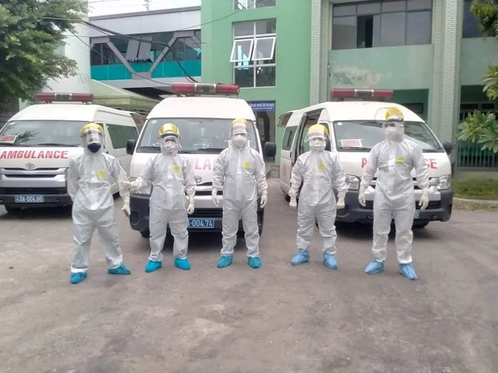Cán bộ nhân viên của Trung tâm cấp cứu 115 Đà Nẵng làm việc xuyên ngày đêm. Bất cứ ở đâu có ca nhiễm mới cần vận chuyển họ đều tức tốc có mặt.