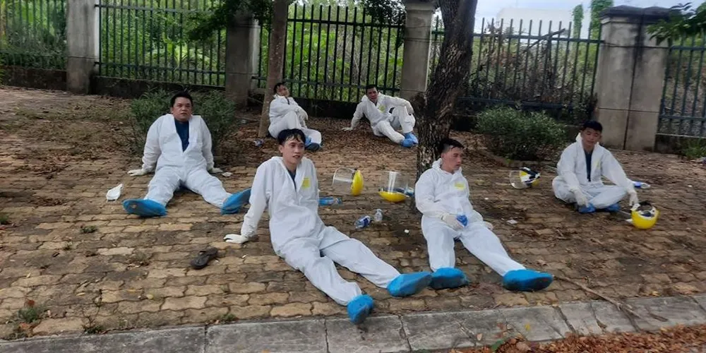 Khu vực riêng biệt dành cho những "người vận chuyển" tự tẩy trùng, sát khuẩn cho mình. Mấy hôm nay, cường độ làm việc quá tải, quá vất vả nên đã có một số người xuống sức.