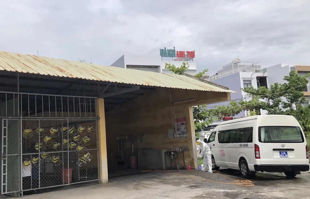Trưa 5-8, một xe sau khi chở bệnh nhân nhiễm COVID-19 đến nơi chữa trị trở về "đại bản doanh" của mình để tẩy độc khử trùng.