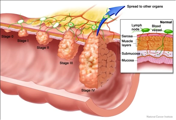 Các giai đoạn của ung thư trực tràng. Hình minh họa.