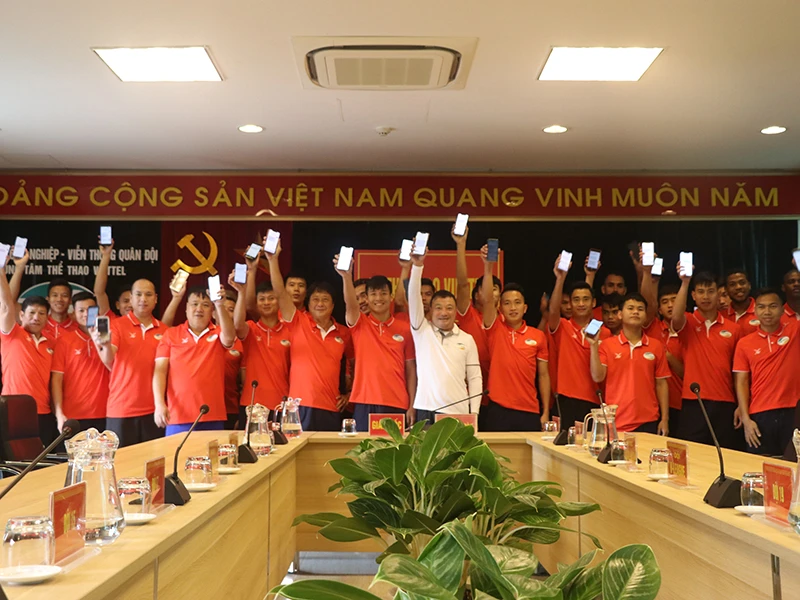 Các cầu thủ Viettel tham gia các hoạt động xã hội và bây giờ là chung tay cùng mọi người góp phần chống dịch COVID-19. Ảnh: CCT