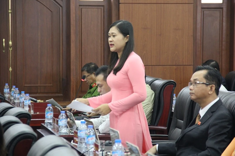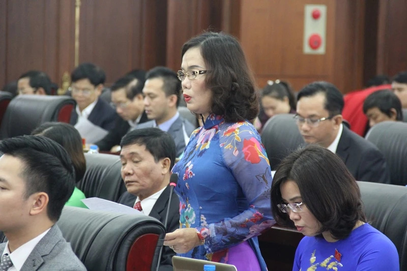 Đại biểu Cao Thị Huyền Trân (Phó Trưởng ban Văn hóa-Xã hội HĐND TP) kiến nghị TP cần đầu tư cơ sở vật chất, tổng rà soát quy mô các trường tiểu học căn cứ trên quy mô dân số địa phương để có lộ trình và phân kỳ đầu tư nhằm nâng cấp các trường. Cạnh đó, xây dựng kế hoạch tuyển sinh trên địa bàn để tránh trường hợp một số trường quá tải, trong khi có trường thiếu học sinh. Ảnh: TẤN VIỆT