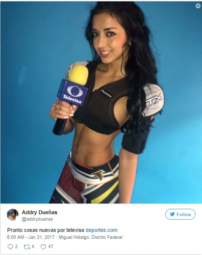Sinh ra ở Colombia, người mẫu 23 tuổi, Addry Duenas đã hiện thực hóa giấc mơ trở thành phóng viên thể thao phỏng vấn những VĐV nổi tiếng nhất thế giới. Hiện cô đang làm việc cho kênh Sport (Mexico) và cô là một fan hâm mộ cuồng nhiệt của đội bóng hoàng gia Tây Ban Nha, Real Madrid.