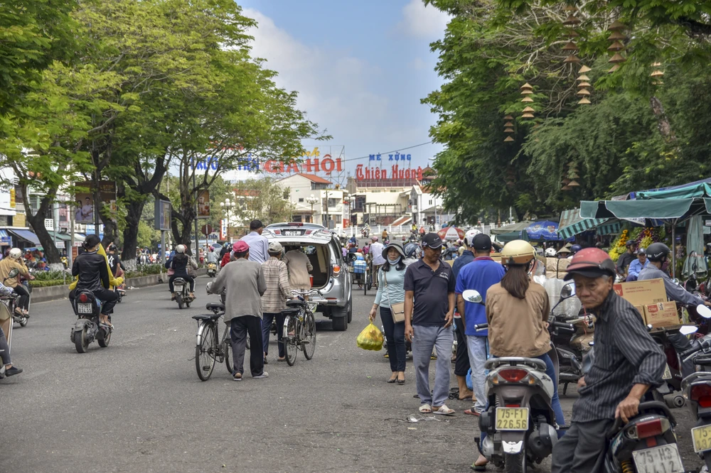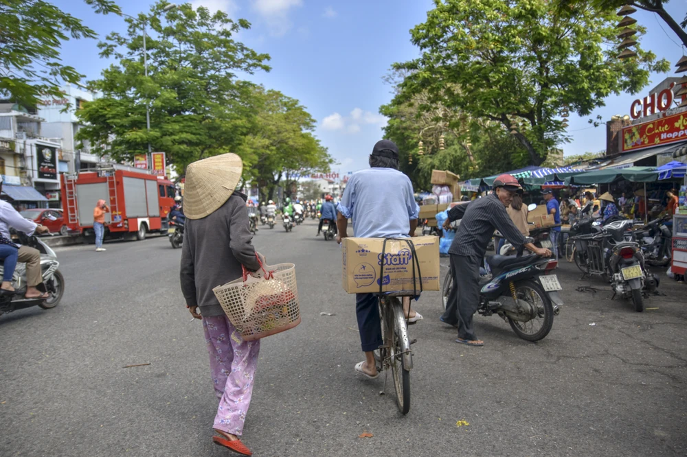 Chợ Đông Ba (TP Huế) ngày 28 tết đông đúc hơn ngày thường, len lỏi trong những người mua kẻ bán, có những người đàn ông tuổi xế chiều vẫn lam lũ mưu sinh cùng với chiếc xe đạp cũ kỹ.