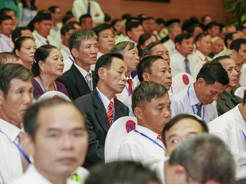 Các chủ tịch và trưởng Ban Công tác MTTQ cấp xã tại hội nghị tuyên dương ngày 13-10. Ảnh: CHÂN LUẬN