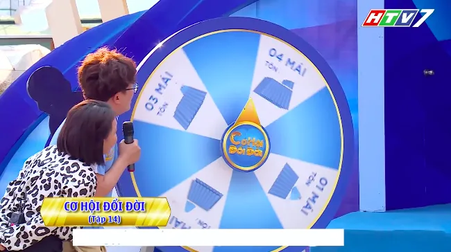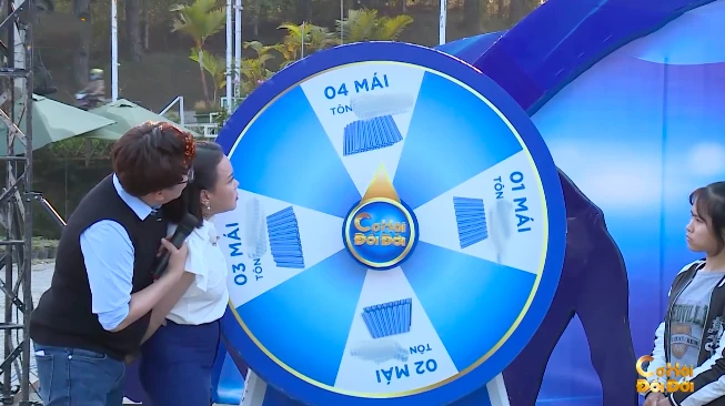 MC Đại Nghĩa miệng thì nói: “Vòng xoay may mắn chưa có dấu hiệu dừng lại, chắc còn rất lâu…” thì chỉ vài giây sau, anh đã hô biến cho vòng quay dừng lại ngay ô 4 mái.