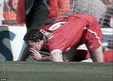 Tiền đạo Robbie Fowler của Liverpool có pha ăn mừng gây tranh cãi như người đang hít heroin trong trận derby vùng Merseyside năm 1999. Với pha ăn mừng phản cảm này, Fowler bị LĐBĐ Anh phạt 60.000 bảng Anh.