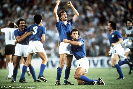 Cảm xúc dâng trào của Marco Tardelli (Italia) sau khi trọng tài nổi còi kết thúc trận chung kết World Cup 1982 với Tây Đức.