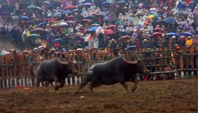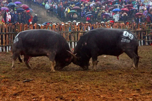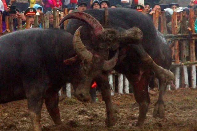 Sáng nay (23-2), mặc dù trời mưa nhưng hàng ngàn du khách đã tới xã Hải Lựu, huyện Sông Lô (Vĩnh Phúc) để chứng kiến tận mắt những màn đấu ngưu kịch tính.