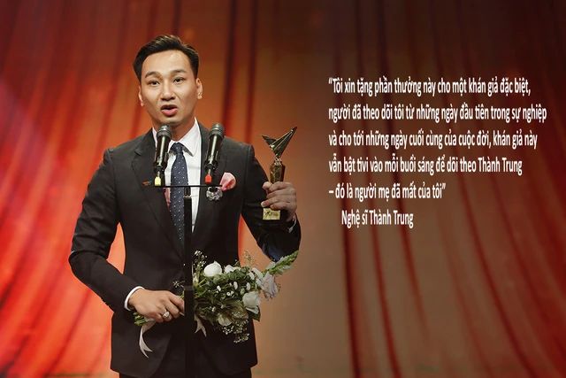 Nghệ sĩ Thành Trung tại hạng mục MC ấn tượng, không quên dành tặng giải thưởng cho người mẹ đã khuất của mình