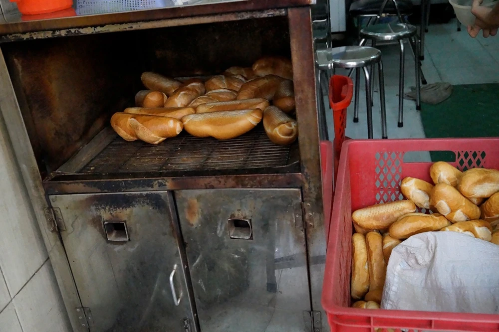 Bánh mì được nướng trực tiếp tại chổ bằng hình thức lò truyền thống.