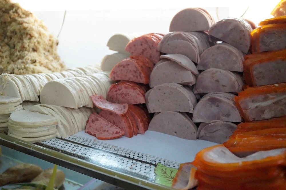 Thịt, chả được sắp xếp gọng gàng nhìn bắt mắt.