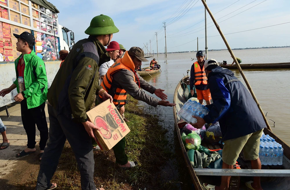 Các đoàn từ thiện chuyển lương thực hỗ trợ người dân miền Trung hồi tháng 10-2020. Ảnh: A.TÙNG