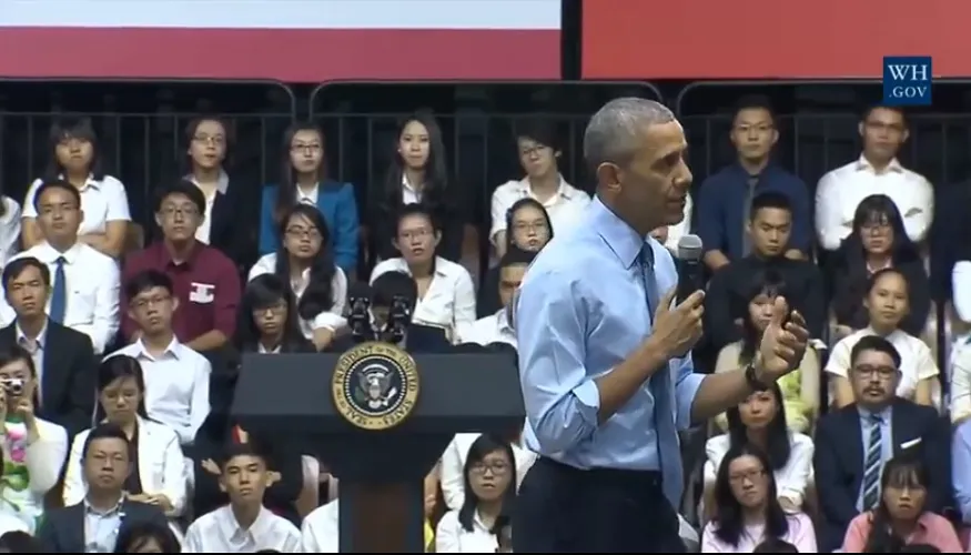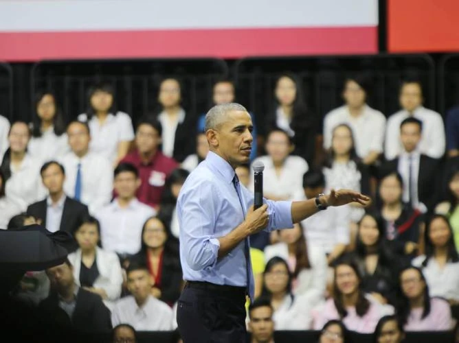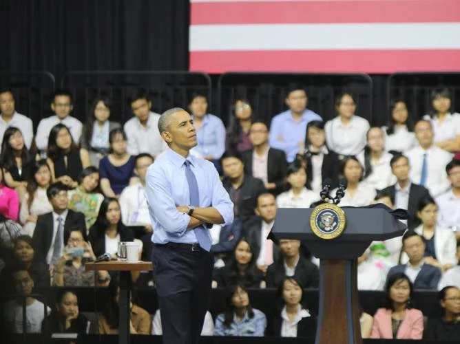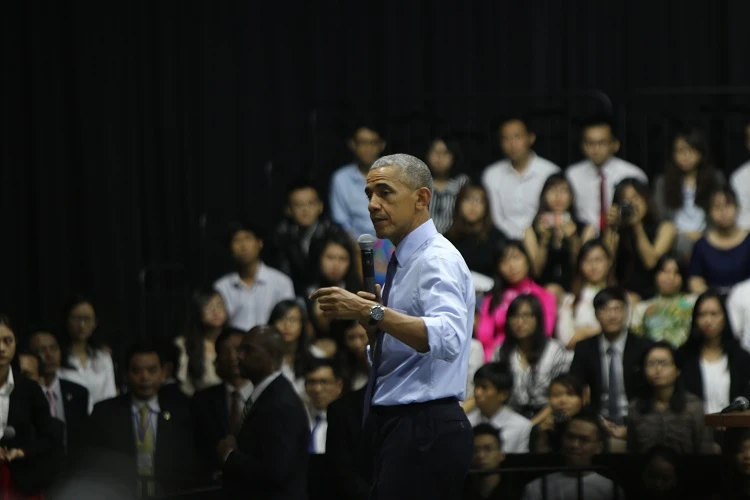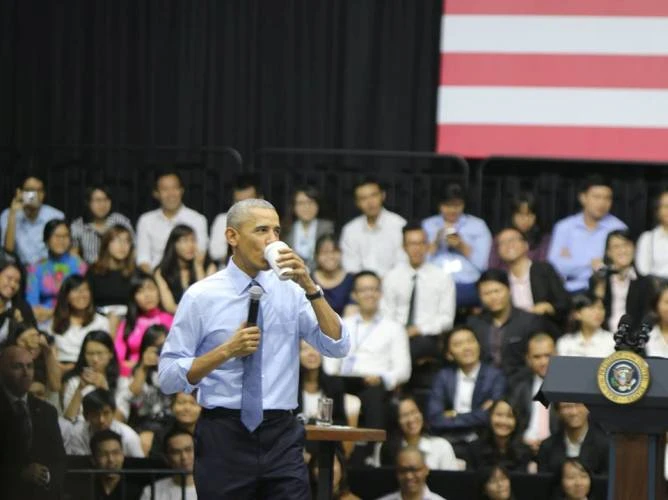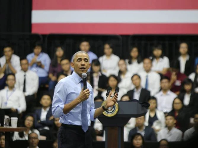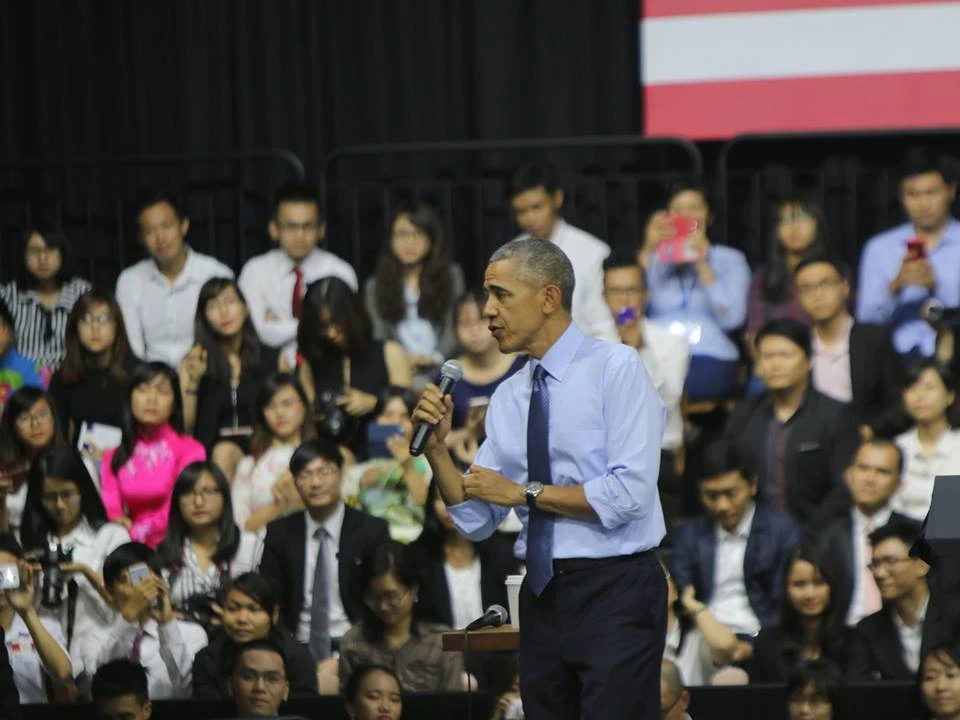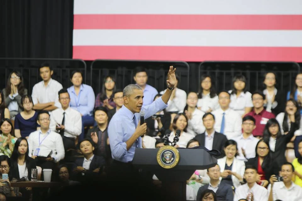 Nhiều bạn trẻ đã đặt những câu hỏi hóc búa cho ông Obama và đều vui vẻ khi được ông giải đáp nhiệt tình