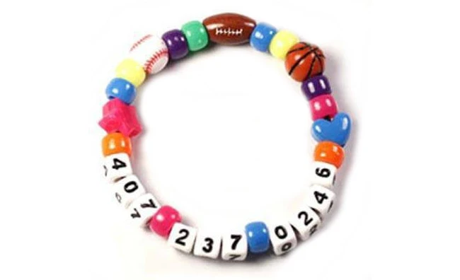 Một cái vòng tay có số điện thoại của bố mẹ phòng khi trẻ đi lạc